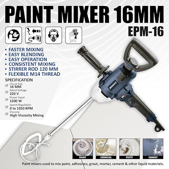 Eastman 1100W Handheld Paint Mixer Electric Stirrer for Paint Cement Putty Paste Feed and Multipurpose Blending Powerful and Efficient Stirring Machine(EPM-16)