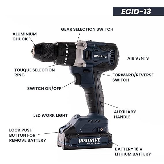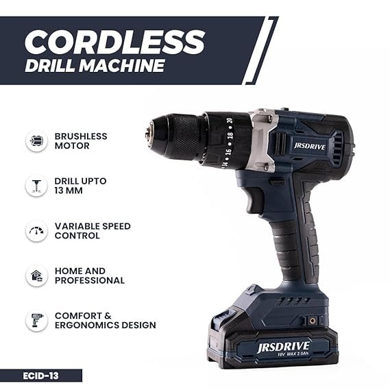Eastman Cordless Drill Machine Bettery Operated -13mm, 18V Li Battery Comes With Carrying Case and Charger Power 800W, No Load Speed – 1750RPM, Torque – 80Nm(ECID-13)