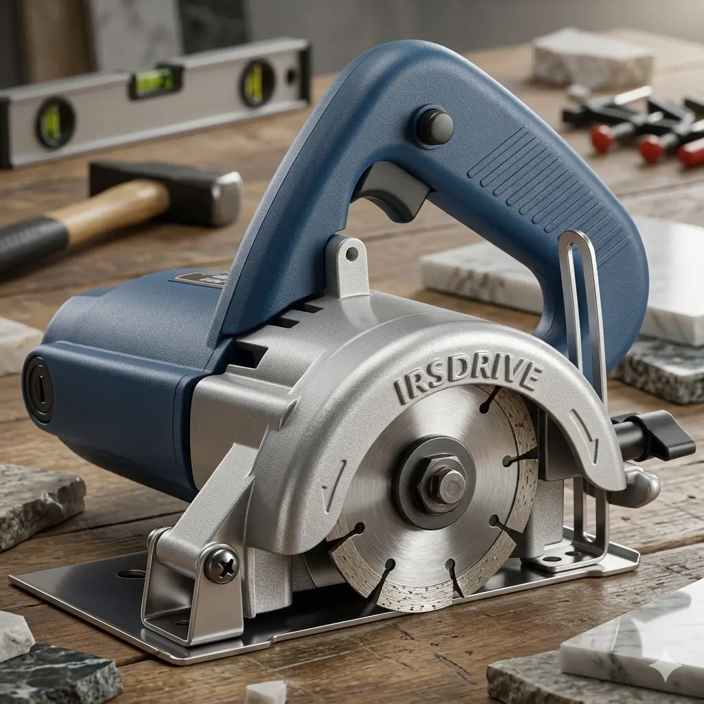 A marble cutter machine is a handheld electric tool used to cut marble, granite, tiles, and other stone materials. It uses a rotating diamond blade powered by a high-speed motor to make precise and smooth cuts.