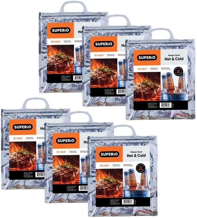 Superio hot and cold food bags offer hours of professional-grade food storage that’s perfect for groceries, lunches, day trips, camping, dinner parties—and of course for restaurants, caterers, and delivery drivers, too. Designed with three durable layers, this insulated cooler bag works two ways—keeping hot foods hot, and cold foods icy cold. Made of sturdy aluminum, eco-friendly EPE plastic, and a non-toxic PE inner film layer, this thermal bag is 100% food safe. With a convenient locking handle, Superio hot and cold food bags can be used over and over again and still keep food at the perfect temperature for hours—even in a hot car— making them a must-have for every household and food establishment.